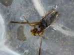 Another tot around today found a few ground beatles and the chap was back in the canal with his waders same spot. Similar stuff to yestday with some additions. The spider were there in number but not as big as the monsters from yesterday. There was Tadpoles present and a red snail that looked like Planorbis rubrum the auatic red snail from fish tanks other red ones are hybrids. There was also a caddis fly larvae made from shells, another horse leach, great diving beetleleas and a curious fly.