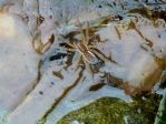 the water spider is reported to be 15mm. most of these were much bigger look in the picture to see the corner of the canal edging stone. The bite can be quite serious apparently. There was only one pirata piraticus spider and this was smalll compare to the water spiders. Picture quality could be better but they were on the move and it was raining and cold. the fisherman was very knowledgable he reports a very rare type of fresh water clam which he again reports is buried deep in the mud due to the cold weather. I went to Swan lodge before and did somwe dipping. I found a tiny diving beetle and some bushes were in flower returning diapointed I saw a man in waders with net heading for the cut. Things picked up.